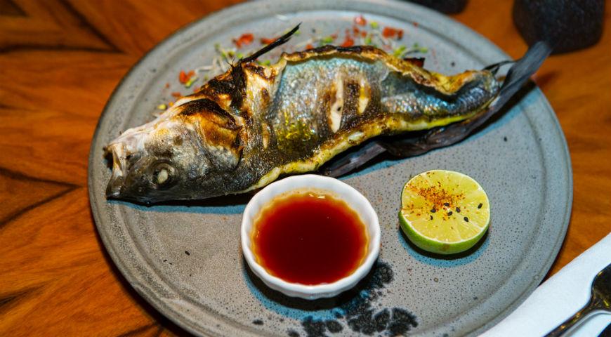 Поскольку в меню ресторана Madame Wong представлена современная китайская кухня, готовили Сибаса с китайскими травами и сычуаньским перцем на угольных брикетах ГлавЖар.<br>