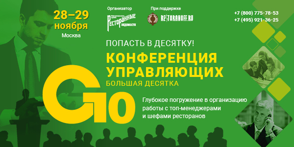 Конференции G10 — это возможность избежать болезненных ошибок в бизнесе, получить ценные инсайты и спланировать концепцию развития своих заведений на 2019 год. Вместе со спикерами G10 вы выработаете правильную стратегию работы с подрядчиками, научитесь правильно ставить задачи перед сотрудниками, определять их KPI, а также сможете собрать воедино все необходимые инструменты, чтобы выстроить эффективную стратегию управления в своем ресторане!<br>