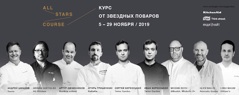 С 5 по 29 ноября кулинарная школа Novikov School уже во второй раз проводит образовательный гастрономический курс All Stars с участием известных шеф-поваров.