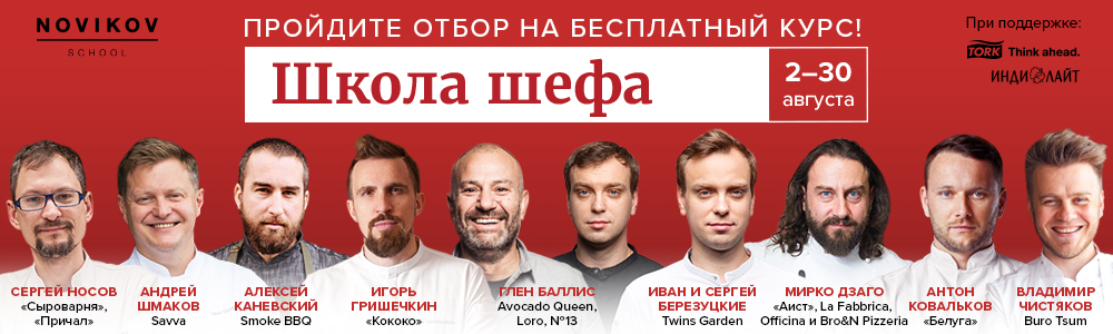<h2>Школа Шефа в Novikov School: открыт отбор на первый бесплатный курс для поваров, которые хотят стать шефами!</h2>